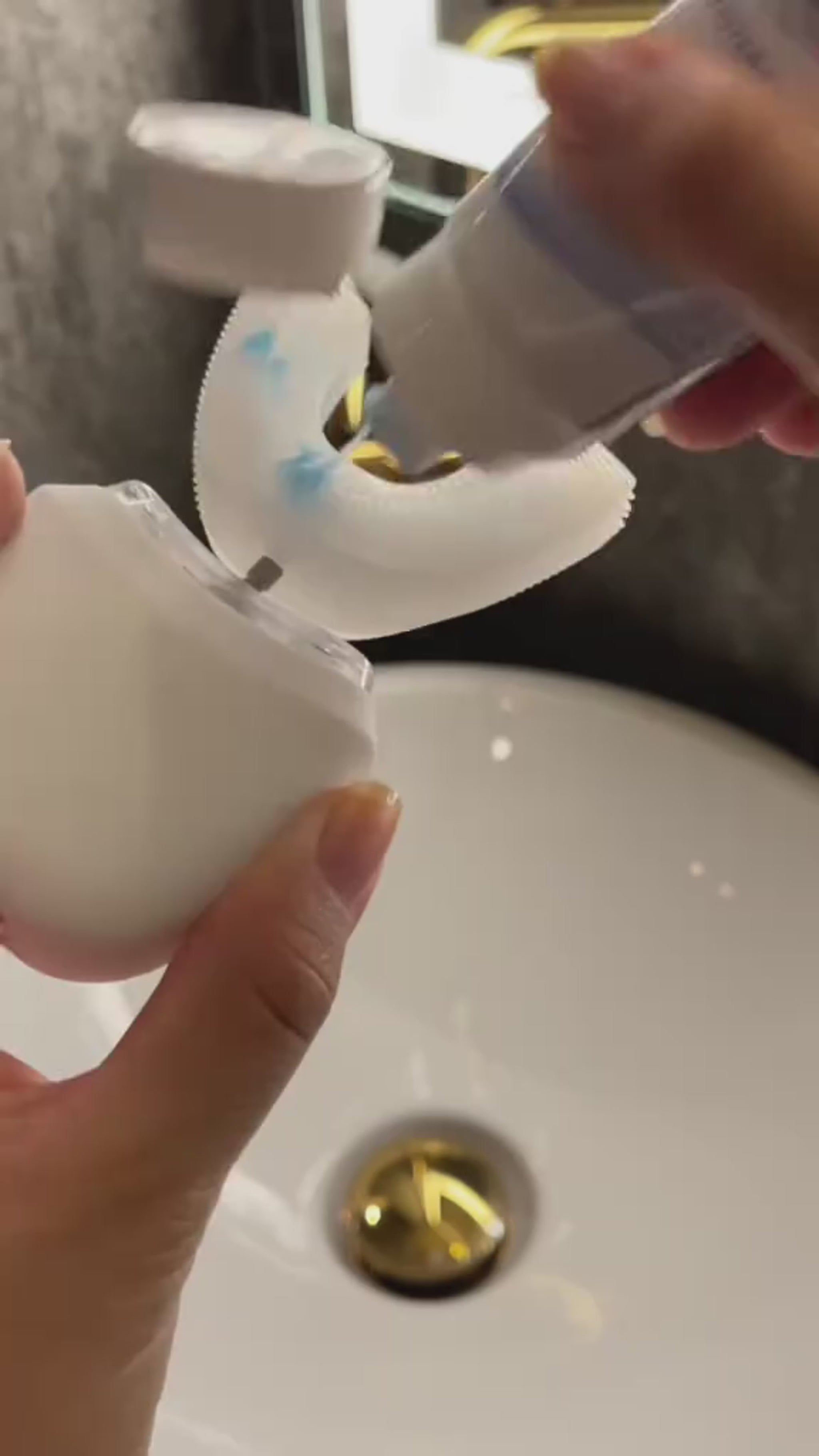Déposez une petite quantité de dentifrice sur les deux côtés de l’embout en forme de U.